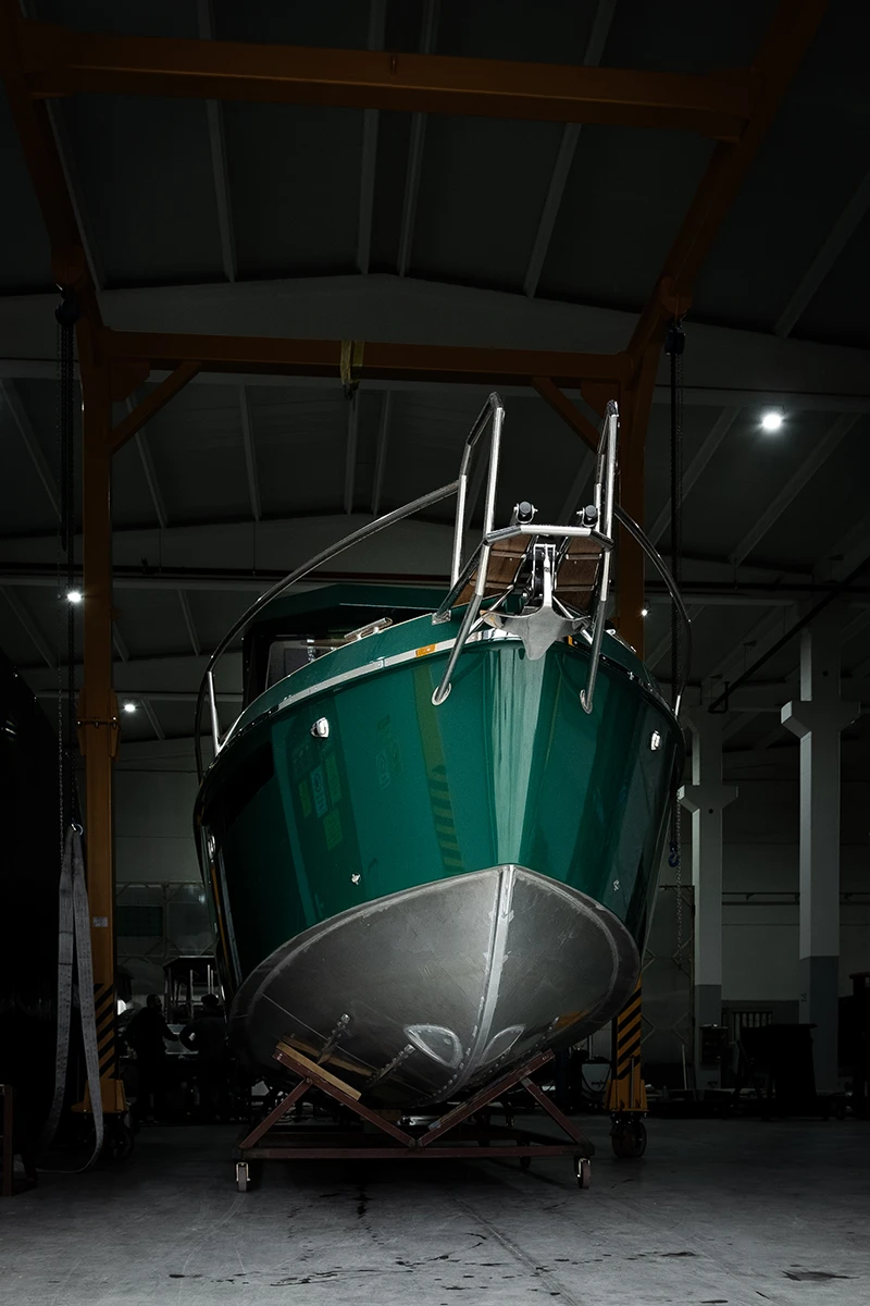 Following the paint application the boat undergoes rough finishing in preparation for the next production stages. At the same time, the engine installation process begins. Otherwise the power system is flawlessly fitted into the boat’s hull in order to maximize the performance.