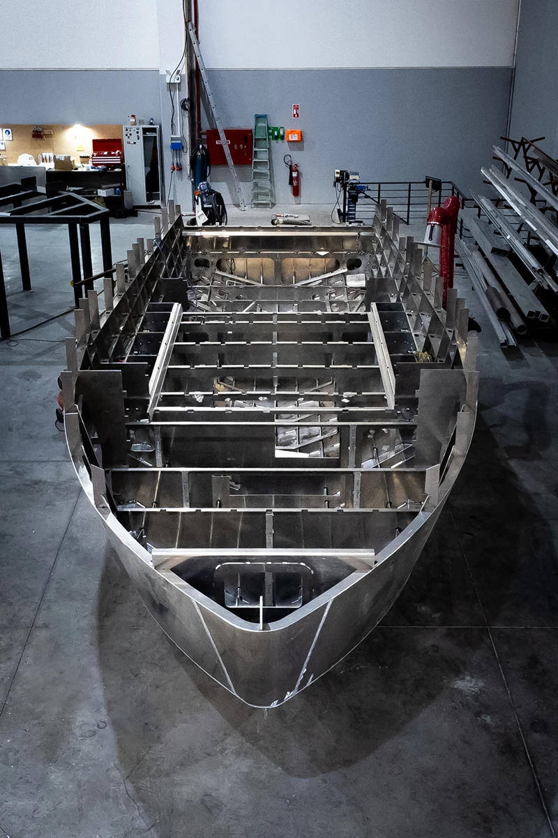 State-of-the-art CNC cutting machines are used to cut aluminium sheets precisely into the exact shapes needed to ensure accuracy in every detail of the boat's design. This step is crucial to achieve optimal structural integrity and a perfect fit during assembly. Reducing aluminium waste will significantly impact your cost-saving strategy and help protect the environment.